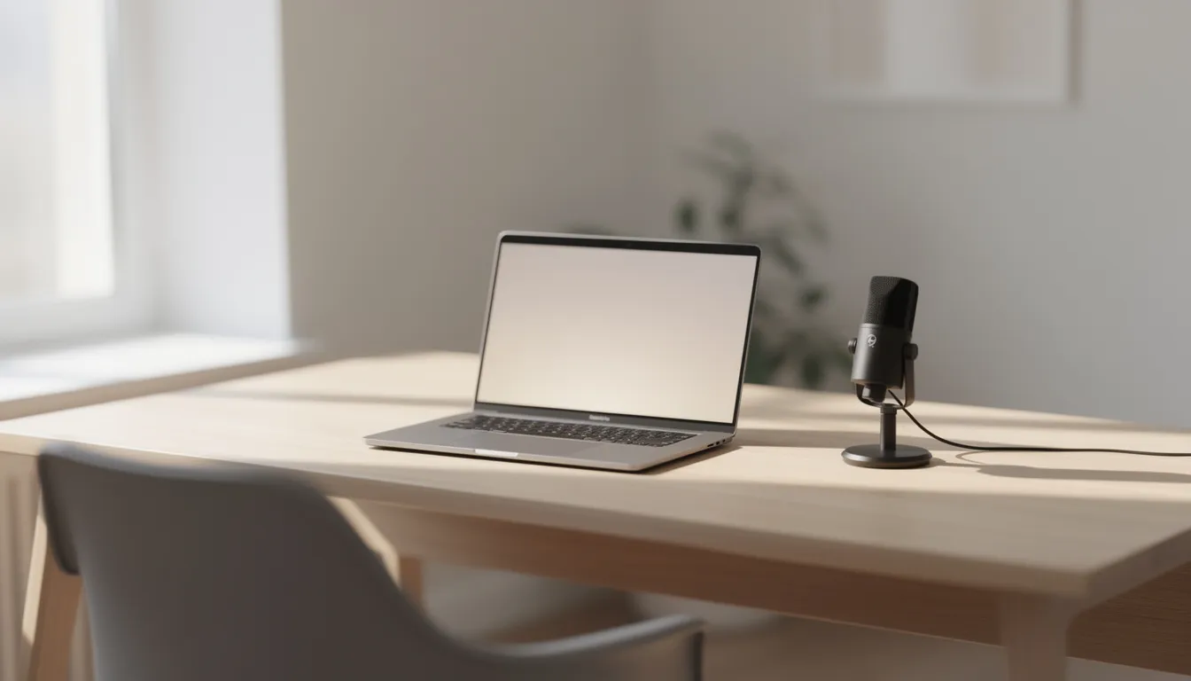 • Choose your environment wisely. Avoid echoey rooms and loud cafes when possible. A quiet home office or meeting room with a 2023-era laptop is typically sufficient. The difference between good and bad audio is often the room, not the microphone.